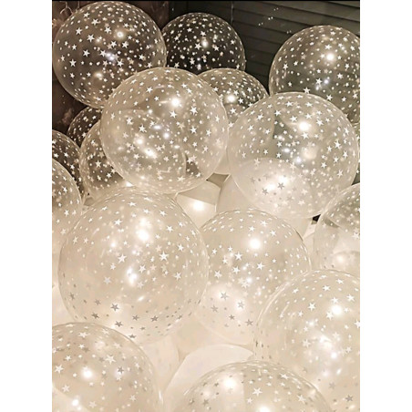 Воздушный шар с гелием, прозрачный, с рисунком звезды.